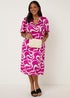 Learn moreHave fun this summer with this playful swirl print dress from our Papaya Curve range. In fierce pink with white thrown into the mix for great versatility, it's fashioned with soft, smooth and luxurious satin fabric. Also featuring a wrap front to create a feminine V-neck, the design is finished with elegant short sleeves and comfy elastic to the waist. Team with heels or sandals. Model Height: 5ft 10.