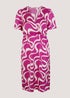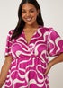 Have fun this summer with this playful swirl print dress from our Papaya Curve range. In fierce pink with white thrown into the mix for great versatility, it's fashioned with soft, smooth and luxurious satin fabric. Also featuring a wrap front to create a feminine V-neck, the design is finished with elegant short sleeves and comfy elastic to the waist. Team with heels or sandals. Model Height: 5ft 10.