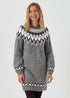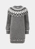 Cosy comfort and chic style combine in this billowing tunic dress. As snuggly as it is sweet, it's cut to a versatile mid-length and knitted with toasty grey marl fabric. Featuring black, cream and metallic fair isle patterning for a fabulous bit of shimmer this winter, this sparkly dress is part of a family range to help parents and children coordinate their outfits.