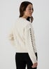 Learn moreUpdate your wardrobe with our cream lace up detail jumper, a timeless piece that exudes sophistication and charm. This jumper is meticulously crafted from soft knitted materials, ensuring you utmost comfort and durability. The classic long sleeve diamond knit pattern is accompanied by black lace up detailing which adds an extra touch of style to this classic knitted jumper. For a casual daytime look, pair the jumper with your favourite pair of jeans and trainers or for a more polished evening ensemble, team it with a skirt, tights, and heels.