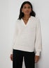 Papaya Petite Cream Pointelle Open Collar Jumper
