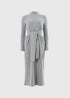Effortlessly chic and endlessly versatile, this timeless dress is a wardrobe staple you'll reach for time and time again. This chic grey number is crafted from sumptuously soft and stretchy jersey fabric and detailed with a tie waist, which cinches you in at the middle. A delicate funnel neck provides added demure and a touch of warmth, whilst the midi length has been perfectly proportioned to suit a petite frame.
