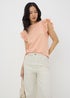 Elevate your everyday look with this charming peach broderie sleeve T-shirt. Featuring delicate broderie anglaise detailing on the sleeves, it adds a touch of elegance to a classic silhouette. Made from soft, breathable fabric, it’s perfect for pairing with jeans, shorts, or skirts for effortless warm-weather style.