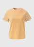Add a touch of crochet look charm to your summer wardrobe with our exquisite Crochet Sleeve Top in a refreshing shade of peach. Crafted from soft and lightweight fabric, this tee offers all-day comfort. Intricate crochet look sleeves that exude a touch of femininity while the round neckline, ensuring a classic and versatile look. Pair it with denim shorts and espadrilles for a casual daytime look or dress it up with wide-legged trousers and heels for an evening soirée.