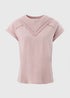 Add a touch of elegance to your everyday style with our Pink Broderie Short Sleeve T-Shirt. Crafted from soft, breathable fabric, this tee features intricate broderie detailing along the neckline and sleeves, offering a delicate, textured finish. The deep navy hue adds a sophisticated, timeless appeal, making it easy to dress up or down. Whether paired with jeans for a casual look or dressed up with a skirt, this versatile T-shirt is perfect for adding a feminine, refined touch to your wardrobe. Ideal for both day and night, it's the perfect blend of comfort and style.