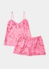 Learn moreEmbrace the holiday spirit with this lovely pink pyjama set. Providing luxurious comfort, thanks to the silky satin construction, it's adorned with charming candy cane prints for a touch of Christmas magic. Sure to make the perfect gift, too, the top is finished with a flattering neckline and slim cami straps, while the matching shorts are rounded off with a stretchy waist. Model Height: 5ft 9.