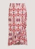 Learn moreGo the extra mile when amping up your skirt collection with this charming design. Cut with a billowing midi silhouette, the skirt features a tonal pink print, complete with a crinkle texture. Styled with a wrap front, additional detailing includes a frill trim, alongside an asymmetric hem and a stretchy elasticated waistband.