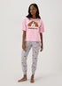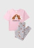Learn moreAdd some adorable fun to your pyjama sets with our pink dog print top and bottom pyjama set! With a comfortable elasticated waistband and straight leg trousers with a short sleeved top, this pyjama set is sure to keep you cool and comfy all night long. The vibrant pink colour is playful, while the adorable dog design on the top and all over the trousers adds a touch of whimsy. Whether your lounging around the house or going to sleep our pink dog print top and bottom pyjama set is the perfect outfit!