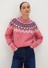 Learn moreBrighten up your winter wardrobe with this classic pink fairisle knit jumper. Featuring a timeless fairisle pattern, this cosy knit brings a touch of charm to any casual outfit. With its soft, snug fit and ribbed cuffs, this jumper combines warmth and style effortlessly. Pair it with jeans or leggings for a laid-back yet stylish look that’s perfect for the season!