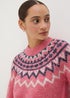Brighten up your winter wardrobe with this classic pink fairisle knit jumper. Featuring a timeless fairisle pattern, this cosy knit brings a touch of charm to any casual outfit. With its soft, snug fit and ribbed cuffs, this jumper combines warmth and style effortlessly. Pair it with jeans or leggings for a laid-back yet stylish look that’s perfect for the season!