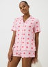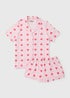 Bring a touch of sweetness to bedtime with this pretty pink PJ set. Crafted from soft, stretch fabric, this dreamy set features a playful heart print and a relaxed fit for easy comfort. The top is cut with short sleeves and features a classic button-through front, complete with a smart collar. Matching shorts with an elasticated waistband complete the pair. Perfect for cosy nights in or laid-back lounging on Valentine's Day, it’s an effortless addition to your nightwear collection.