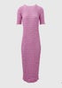Crafted with meticulous attention to detail, this Pink Hyper Texture Midi Dress, features a gorgeous bold pink hue that exudes femininity and freshness. The hyper-textured surface adds a unique, tactile element that is both visually appealing and delightful to the touch. With its crew neck, 3/4 sleeves, midi length and fitted design, this dress accentuates the wearer's form while allowing for ease of movement. Pair with trainers, a denim jacket and a crossbody bag for a casual weekend look.