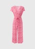 Step into comfort and style with our Pink Jersey Wrap Jumpsuit, a versatile addition to any wardrobe. Featuring a soft jersey fabric adorned with a delicate pink print, this jumpsuit offers both comfort and a touch of femininity. The wrap design creates a flattering V-neckline and cinches at the waist with a tie belt, enhancing the silhouette. Short sleeves make it ideal for transitional weather or layering under jackets. The wide-leg pants provide ease of movement, making this jumpsuit perfect for both casual outings and dressier occasions. Whether paired with sandals for a daytime look or heels for an evening out, this Pink Jersey Wrap Jumpsuit is sure to turn heads while providing all-day comfort.