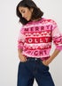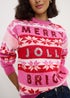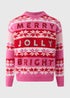 Pink Merry Jolly & Bright Christmas Jumper - Extra small