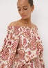 Pink Paisley Print Shirred Bardot Top