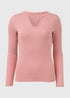Pink Rib Notch Neck Long Sleeve Top