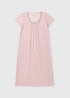 Settle into quiet evenings with this gentle, easy-wear nightie crafted from 100% cotton for a naturally breathable, comfortable feel. The soft pink fabric features a subtle all-over print, falling to a longline length that gives relaxed coverage without feeling heavy. A lace trim, scoop neckline with delicate pintuck detailing adds a feminine touch while keeping the look simple and understated. Finished with short sleeves and a smooth, flowing silhouette, it’s the perfect piece for unwinding at the end of the day.