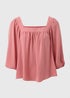 Pink Square Neck 3/4 Sleeve Blouse