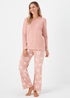 Learn moreThere's nothing better than a fleecy pair of pjs in the chillier months! Styled in a pretty pink tone, the set features snug long sleeves, a comfortable crewneck, an elasticated waist for a personalised fit and a star print to the bottoms for dreamy night's sleep. Cut with a super soft fleece material, they're a must-have in your collection. Length: 75cm.