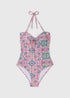 Learn moreThis one-piece wonder is adorned with a vibrant, intricate mosaic pattern, featuring an array of colours that dance across the fabric. The tie front detail adds a touch of elegance and allows for adjustable comfort. With its halter neck design, you're promised a secure fit that accentuates the shoulders and back. Made from a blend of high-quality materials, this swimsuit offers both durability and flexibility, ensuring you look fabulous whether you're lounging by the pool or taking a dip in the ocean.