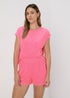Be Summer-ready with our Pink Towel Textured Shorts. Crafted with high-quality textured breathable fabric, these shorts feel like you're wrapped in a cloud while keeping you cool and comfortable all day long. In a vibrant shade of pink, these high-waisted shorts are designed to flatter your figure with their relaxed fit and elasticated waistband for adjustable comfort. The two handy side pockets are perfect for stashing your essentials. Pair with a bandeau bikini top, oversized sunglasses, and a floppy hat for a beachy look that'll turn heads or dress up your shorts with a crisp white shirt, layered jewellery, and strappy sandals for a chic day-to-night outfit.