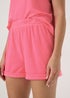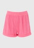 Learn moreBe Summer-ready with our Pink Towel Textured Shorts. Crafted with high-quality textured breathable fabric, these shorts feel like you're wrapped in a cloud while keeping you cool and comfortable all day long. In a vibrant shade of pink, these high-waisted shorts are designed to flatter your figure with their relaxed fit and elasticated waistband for adjustable comfort. The two handy side pockets are perfect for stashing your essentials. Pair with a bandeau bikini top, oversized sunglasses, and a floppy hat for a beachy look that'll turn heads or dress up your shorts with a crisp white shirt, layered jewellery, and strappy sandals for a chic day-to-night outfit.