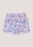 Learn moreHeat up your holiday wardrobe with this snazzy swim shorts. Styled with a pink base colour, the shorts are finished with an all-over tropical floral print. Cut with recycled polyester, a stretchy elasticated waistband trimmed with a drawcord, and handy side pockets complete the design.