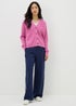 Time to revamp your knitwear collection with our versatile V-Neck Cardigan in pink. This v-neck cardigan, spun from a blend of soft knit offers a figure-hugging fit, accentuating your silhouette in a ribbed knit. Pair with your favourite denim and a cami for a casual, everyday look.