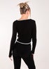 Pink Vanilla Black Contrast Stitch Long Sleeve Knit Top