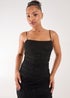 Pink Vanilla Black Glitter Mesh Ruched Midi Dress