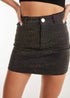 Sparkle this season with this super cool Rhinestone Mini Skirt. Featuring a denim-like fabric and rhinestone embellishment, you'll be the star of every music festival this summer.