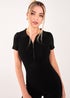 Learn moreWe are loving this black unitard. Featuring a half zip, collared neckline and figure hugging material for a look that will make you feel amazing! Pair with an oversized leather jacket, trainers and accessories for a perfect athleisure look.