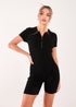 Pink Vanilla Black Ribbed Collar Zip Up Unitard