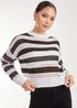 Pink Vanilla Black Striped Crochet Long Sleeve Top