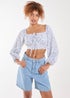 This top screams SPRING! Featuring a floral cute print, milkmaid design and cropped style, we're sure this will be your go-to pick this year.