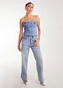 Pink Vanilla Blue Metallic Silver Foil Denim Corset Top