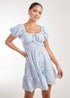 Pink Vanilla Blue Puff Sleeve Printed Mini Dress