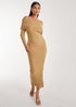 Pink Vanilla Camel Bardot Ribbed Knit Midi Dress