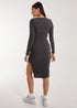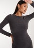 Pink Vanilla Charcoal Soft Brushed Rib Long Sleeve Midi Dress