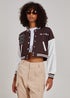 • Pink Vanilla Chocolate Contrast Sleeve Baseball Jacket