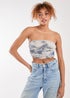 Learn moreDid we have enough of this distressed print?! Of course not, girl! Cute little piece for a night out with your bestie, style it with jeans and oversized leather jacket.