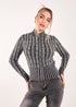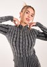 Pink Vanilla Dark Grey High Neck Zip Up Cable Knit