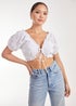 Pink Vanilla Ivory Broderie Puff Sleeve Tie Top
