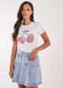 Pink Vanilla Ivory Cherry Embellished T-Shirt