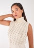 Pink Vanilla Ivory Knitted High Neck Threaded Sleeveless Top