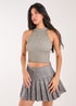 We are obsessed by racer tops this season. This one features a logo detail. Complete the look with a cool mini skirt.