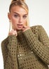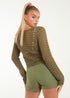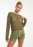 Pink Vanilla Khaki Long Sleeve Crochet Top