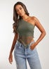 Pink Vanilla Khaki Mesh One Shoulder Hanky Top