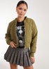 Pink Vanilla Khaki Textured Puffer Bomber Jacket