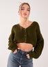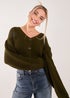 Pink Vanilla Khaki V Neck Cropped Knitted Cardigan